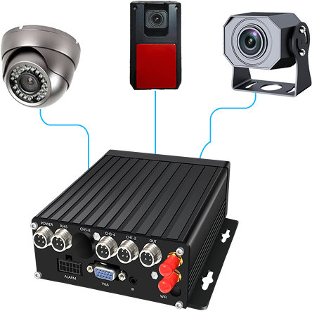 Each mobile DVR can support multiple channels (4–8), capturing synchronized footage from various angles for comprehensive vehicle coverage.